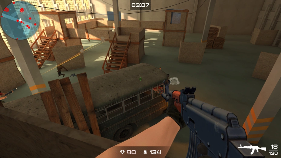 - ⚔️ Командный бой — классический тим‑дезматч. Две команды сражаются до достижения лимита убийств. Просто и весело.
